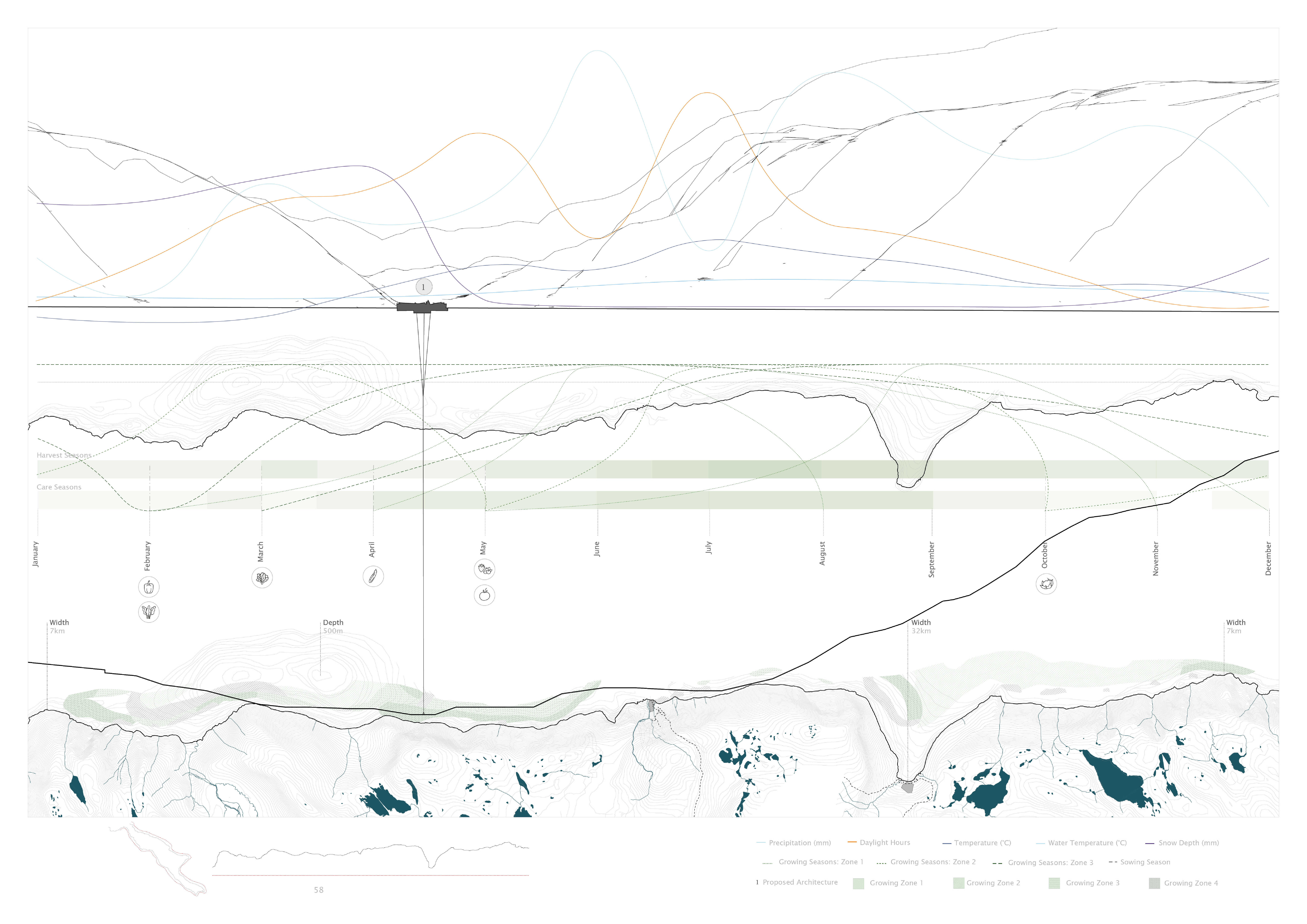 This project displays an alternative method for aquaculture; a floating hydroponic fish farm located within a fjord that establishes a barrier from pollution and utilises a circular resource system to reduce waste. In doing this, there will be less farms needed, alleviating the current environmental pressures, while providing more food.