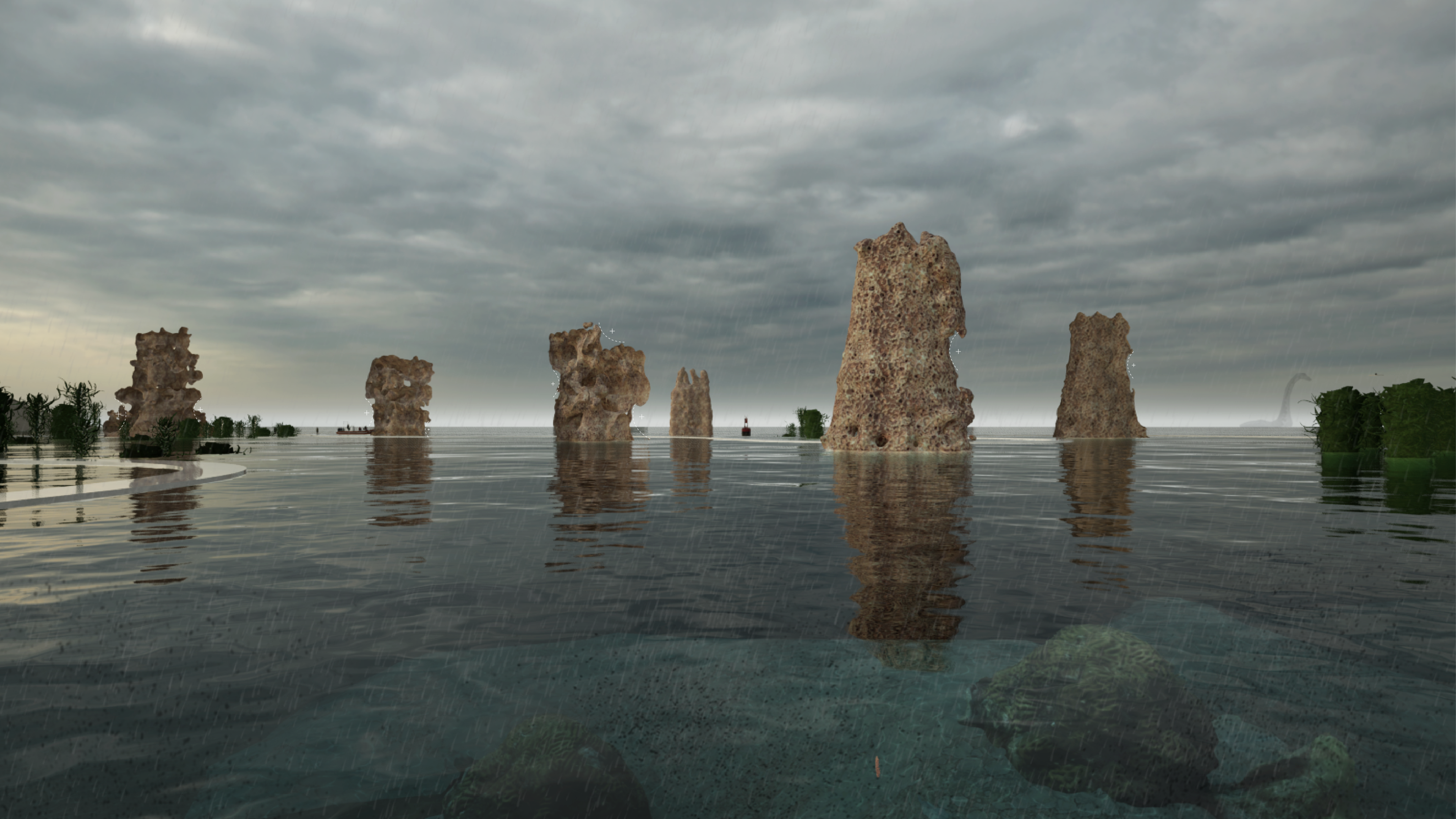 Beyond their ecological performance, the Poroliths support a broader marine programme. Floating walkways tethered to the towers allow access for kelp farming, marine research and visitor exploration. As the structures grow distortedly and filter, adapt and emerge through time as a derivative of kinetic energy within the Bay, they become hybrid artefacts: part biological machine, part civic infrastructure, part living reef.